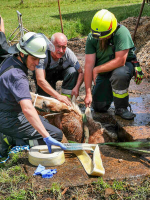 Außergewöhnlicher Einsatz: Pferderettung aus Güllegrube