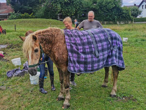 Nach einer gründlichen Reinigung und einer ersten tierärztlichen Untersuchung wurde das – glücklicherweise nur leicht verletzte – Pferd in seinen Stall zurückgebracht.